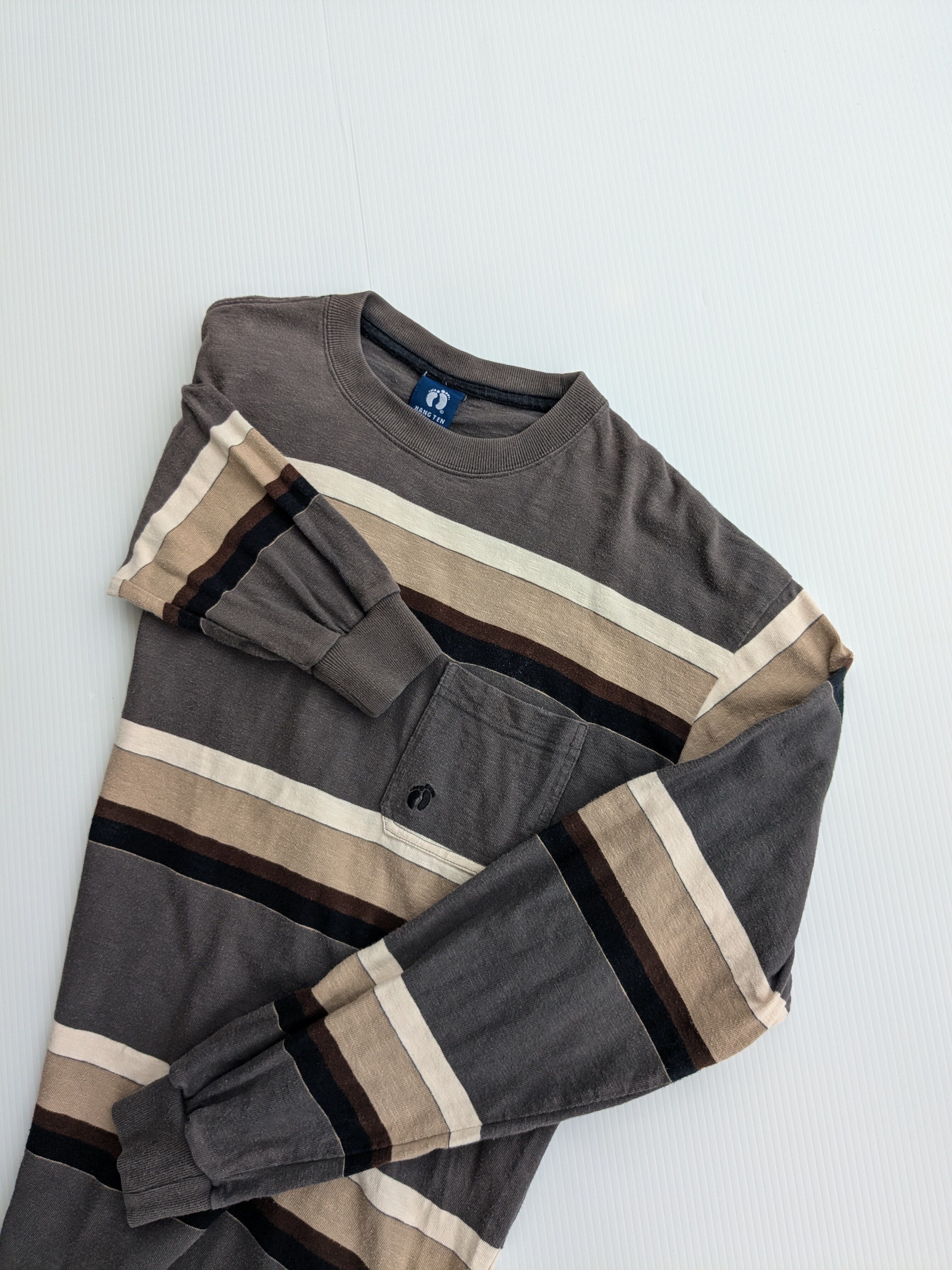 90's HANG TEN wide border long sleeve shirt "soil brown"